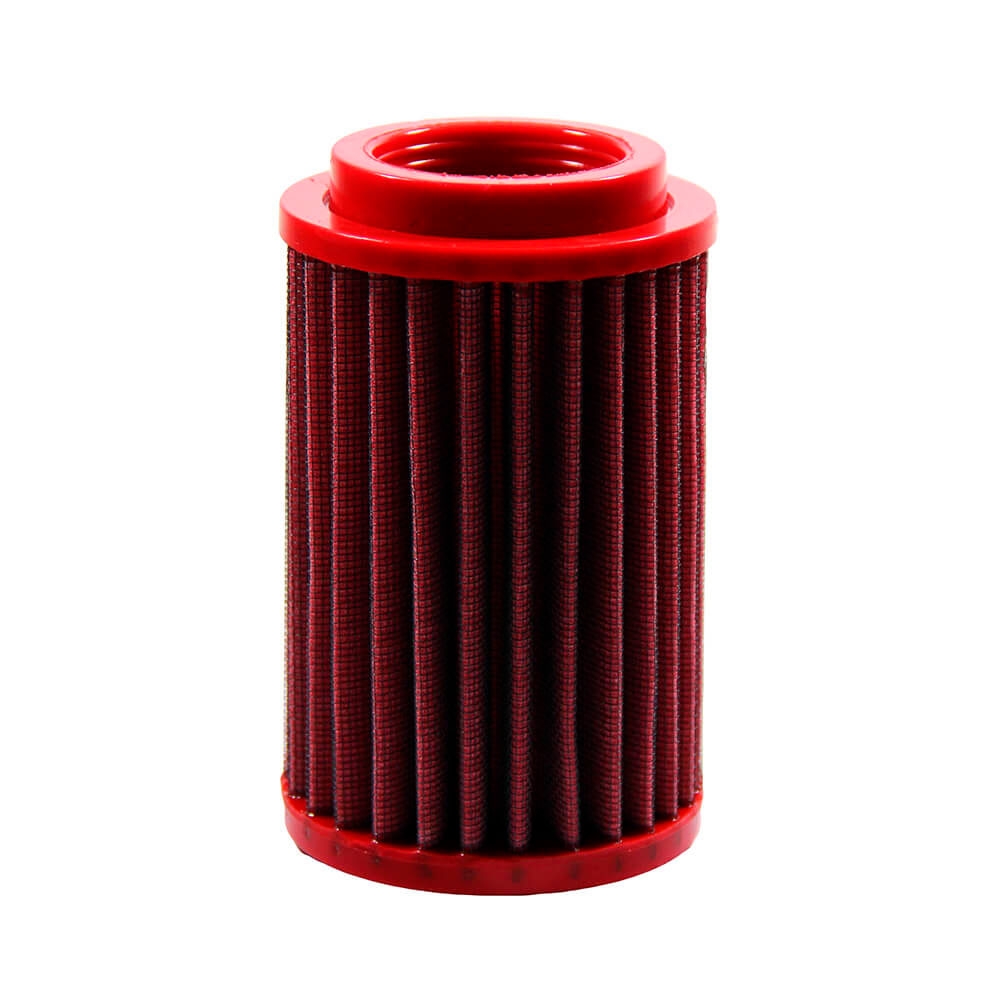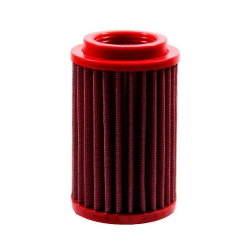 Filtro aire Bmc FM966/08 (Versión standard con menos entrada de aire). El filtro de aire Bmc Filter FM966/08 posee un diseño específico y está diseñado para colocar en sustitución al filtro de aire original. El filtro de potencia Bmc FM966/08 de alto rendimiento cuenta con la misma forma que el filtro standard, pero con una base de filtrado mayor. Este filtro reutilizable se caracteriza por su diseño que mejora notablemente la capacidad de aspiración de la toma de aire en comparación con los filtros tradicionales, mejorando también la calidad de la combustión. El filtro de potencia Bmc FM966/08 consta de una gasa de algodón de múltiples capas impregnada con aceite de baja viscosidad y recubierta con una malla de aluminio tratado con resina epoxy que garantiza la protección contra los humos del combustible y la oxidación debida a la humedad del aire. Las impurezas se filtran gracias al efecto pantalla y de retención, siendo capturadas por las fibras de algodón y retenidas por el aceite. Este proceso no obstruye la entrada de aire y garantiza el rendimiento constante del filtro de aire a largo plazo. El proceso de filtrado es continuo y los cuerpos extraños quedan depositados en el tejido sin bloquear el flujo de aire. El filtros Bmc está realizado mediante un sistema de “moldeado completo” que permite al característico filtro rojo ser de una sola pieza, sin juntas soldadas, lo cual evita la rotura. La goma que se utiliza en los sistemas de filtrado de aire Bmc es muy resistente y duradera, y posee unas características de adherencia óptimas para adaptarse a todas las formas de las cajas de aire.