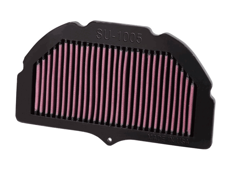 Filtro de potencia KN Filter SU-1005R Suzuki GSX R 1000 2005-2006. El filtro de aire KN SU-1005R lavable y reutilizable, aporta un alto flujo de aire, un aumento de la potencia, mayor aceleración y un excelente filtrado. El filtro de potencia KN SU-1005R dura un máximo de 50,000 millas (80,467 kilómetros) antes de que sea necesario limpiarlo (dependiendo de las conducción). 10 años o un millón de millas (1,609,344 kilómetros) de garantía limitada. Precio por unidad.