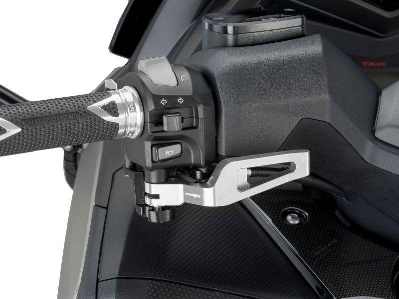 Freno parqueo Puig 8500P Hi-Tech Yamaha T-Max 530 2012/2016 Plata. Con el freno de parqueo Puig 8500P podrás darle a tu Yamaha T-Max 530, un toque de elegancia sin gastarte mucho dinero. Realizado an aluminio anodizado, el freno de parqueo Puig 8500P forma parte de una línea de accesorios llamada Hi-Tech y que Puig ofrece para personalizar las T-Max. Su instalación es muy sencilla. El freno de parqueo Puig 8500 está disponible en 5 colores diferentes.