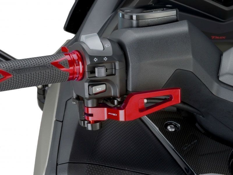 Freno parqueo Puig 8500R Hi-Tech Yamaha T-Max 530 2012/2016 Rojo. Con el freno de parqueo Puig 8500R podrás darle a tu Yamaha T-Max 530, un toque de elegancia sin gastarte mucho dinero. Realizado an aluminio anodizado, el freno de parqueo Puig 8500R forma parte de una línea de accesorios llamada Hi-Tech y que Puig ofrece para personalizar las T-Max. Su instalación es muy sencilla. El freno de parqueo Puig 8500 está disponible en 5 colores diferentes.