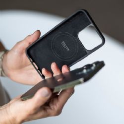 Además de su sistema de bloqueo, la funda SPC+ también incluye una fijación magnética, compatible con los nuevos cargadores inalámbricos SPC+, cargadores MagSafe y cualquier superficie metálica, lo que añade un plus de versatilidad y comodidad a su experiencia de uso.