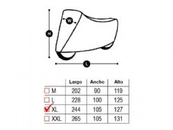 - TALLA XL: 244 cm x 105 cm x 127 cm (largo x ancho x alto).