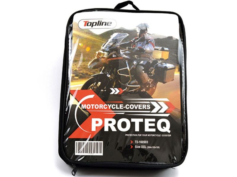 Funda protectora moto Topline talla XL HOUSSXL01. Funda protectora universal para motos y scooters Topline, realizada en Poliéster 300D resistente, impermeable y de color negro.