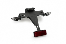 Grupo Iluminación Led Puig 20768N portamatrícula Angle. El grupo de iluminación Puig 20768N portamatricula Angle es la evolución del modelo PLA. Su nuevo diseño compacto facilita la integración de los portamatriculas en la motocicleta, liberando espacio en la zona de los pilotos traseros. La tecnología ed y la nueva disposición de los leds permite mejorar la iluminación central y lateral de la matricula. Es compatible con todos los modelos de portamatriculas Puig que montan grupo de iluminación. Fabricado en plástico ABS, material altamente resistente ante impactos y salpicaduras, se mostrará férreo ante cualquier situación. Sus medidas compactas (45x20mm) permiten una adhesión perfecta a la línea estética de la moto y su tecnología LED mejorar sustancialmente la iluminación de los laterales.