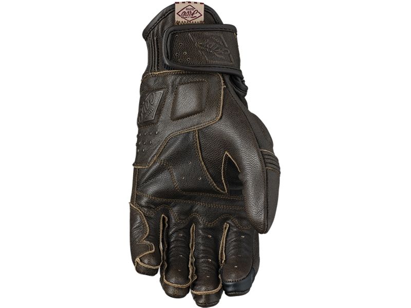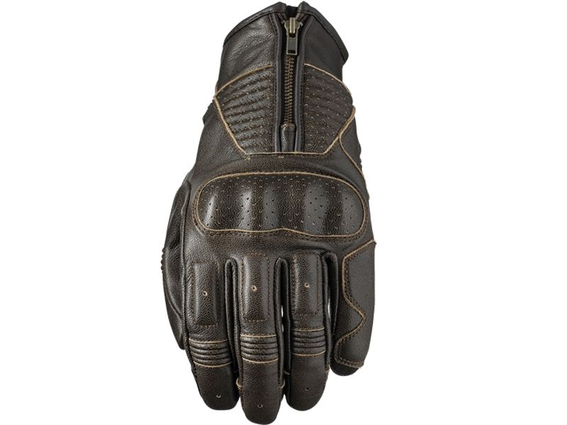 Guantes Five Kansas Marrón. Los Kansas destacan por ser el los guantes de estilo Custom / Cafe Racer con más protección dentro de la gama Five. Estos guantes están dotados de una carcasa protectora metacarpiana de una pieza insertada debajo del cuero y varios refuerzos en las zonas más expuestas. Además ofrecen gran confort y una capacidad de ajuste y sensibilidad táctil excepcionales sobre los puños de la moto, gracias principalmente a sus costuras externas. Sus innumerables detalles, refuerzos de confort y pespuntes, doble cierre con cremallera y cuero con solapa de velcro o su increíble nivel de acabado, hacen que sean unos guantes que los amantes del cuero apreciarán sin descuidar su seguridad. Los guantes Kansas combinan maravillosamente el estilo clásico con un toque moderno, ya que su dedo índice dispone de sistema TouchScreen que te permitirá manejar pantallas táctiles sin quitarte los guantes.