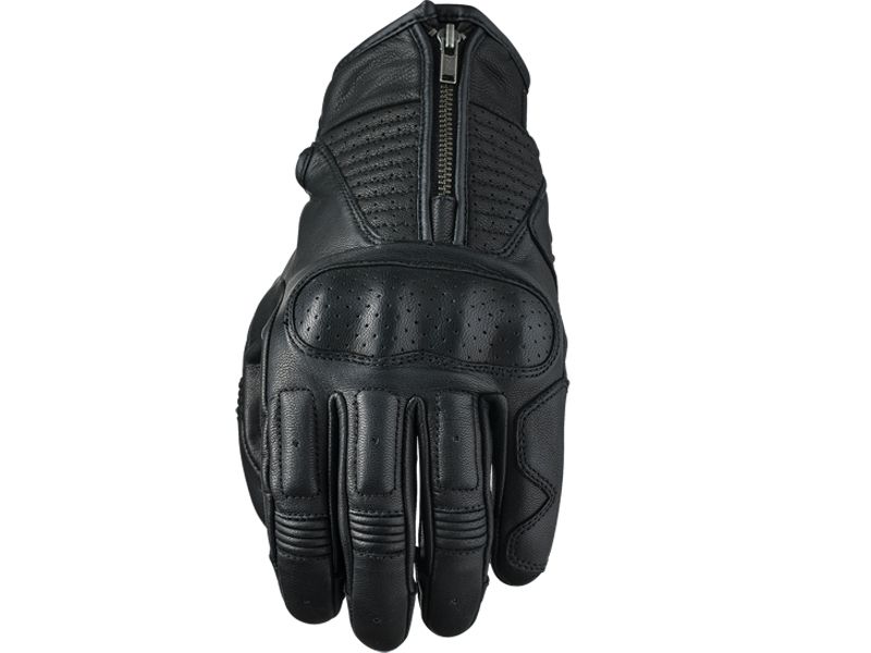 Guantes Five Kansas Negro. Los Kansas destacan por ser el los guantes de estilo Custom / Cafe Racer con más protección dentro de la gama Five. Estos guantes están dotados de una carcasa protectora metacarpiana de una pieza insertada debajo del cuero y varios refuerzos en las zonas más expuestas. Además ofrecen gran confort y una capacidad de ajuste y sensibilidad táctil excepcionales sobre los puños de la moto, gracias principalmente a sus costuras externas. Sus innumerables detalles, refuerzos de confort y pespuntes, doble cierre con cremallera y cuero con solapa de velcro o su increíble nivel de acabado, hacen que sean unos guantes que los amantes del cuero apreciarán sin descuidar su seguridad. Los guantes Kansas combinan maravillosamente el estilo clásico con un toque moderno, ya que su dedo índice dispone de sistema TouchScreen que te permitirá manejar pantallas táctiles sin quitarte los guantes.