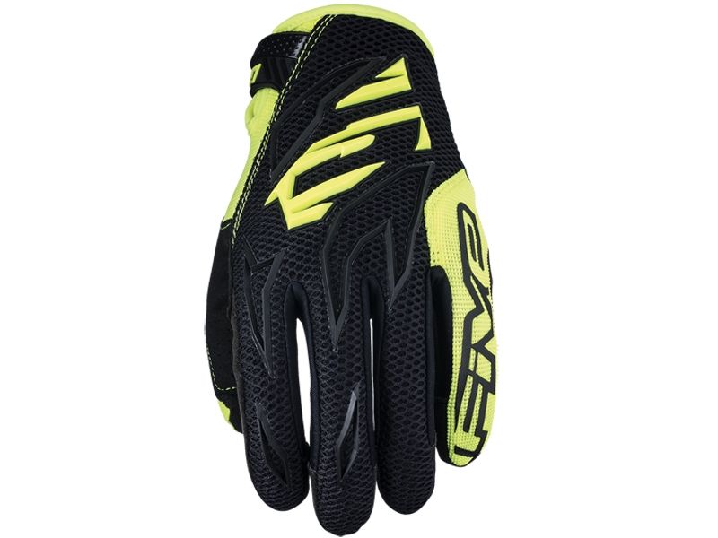 Guantes Five MXF3 v2 Negro / Amarillo. Los nuevos guantes Five MXF3 v2 para motocross se han rediseñado por completo para ofrecer altos nieveles de ventilación y tacto. Con un diseño que destaca por ser muy atractivo y agresivo, los MXF3 v2 están confeccionados en tejido de malla perforada (zona superior) para maximizar el flujo de aire y en piel sintética en la palma de la mano para mayor durabilidad.