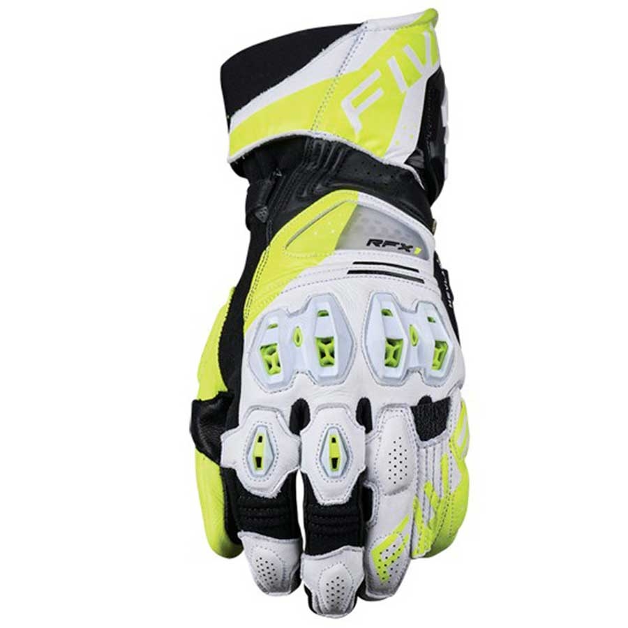 Guantes Five RFX1 EVO Blanco / Amarillo Fluor. El guante de moto Five RFX1 EVO marca un antes y un después en la gama racing de la marca francesa. Más que una evolución, es una auténtica revolución en el diseño, la protección y el confort para los pilotos que exigen el máximo rendimiento. Utilizado con éxito por el bicampeón del mundo de Supersport Domi Aegerter, este guante ha sido desarrollado durante dos años junto a pilotos del Mundial de Supersport y Endurance para ofrecer una precisión y seguridad sin precedentes.