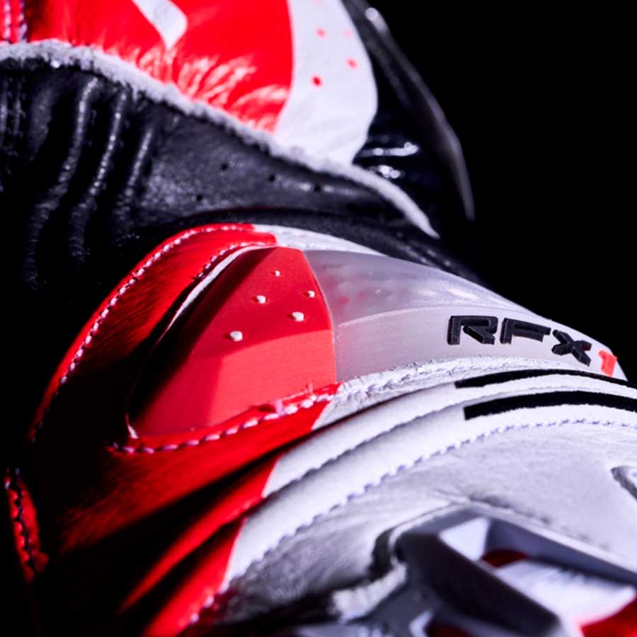 El RFX1 EVO presenta una construcción superior en piel de vaca combinada con Kevlar® elástico, aportando una resistencia a la abrasión y una flexibilidad excepcionales. Su palma en piel flor de cabra ultraflexible garantiza un tacto fino y directo sobre los mandos, mientras que el forro interior micro-Bemberg® reduce la fricción y previene la formación de ampollas en las largas jornadas en pista.