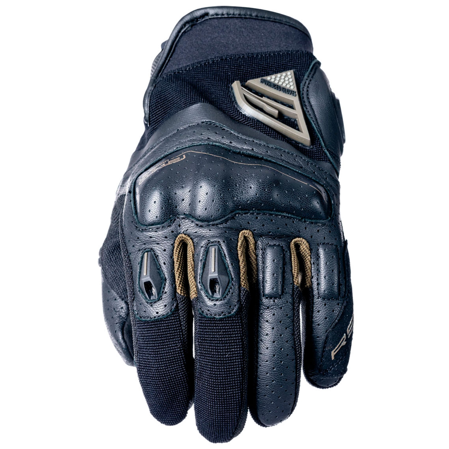 Guantes Five RS2 Evo Negro / Caqui. Los guantes cortos Five Rs2 se han actualizado para 2021 con el añadido RS2 Evo. Los guantes mantienen sus mejores características pero su nuevo diseño es más estilizado y además incluye el nuevo protector Five Ergo Protech que los hace más seguros. También incorporan el sistema Touch Screen para poder manejar pantallas táctiles con los guantes puestos. Confeccionados principalmente en piel de cabra micro perforada, incorporan además zonas de tejido Spandex de 4 vías para ofrecer mayor libertad de movimientos. Para ofrecer una óptima protección en caso de caída, los guantes cortos Five RS2 Evo incorporan protectores ergonómicos en los nudillos (camuflados bajo la piel).