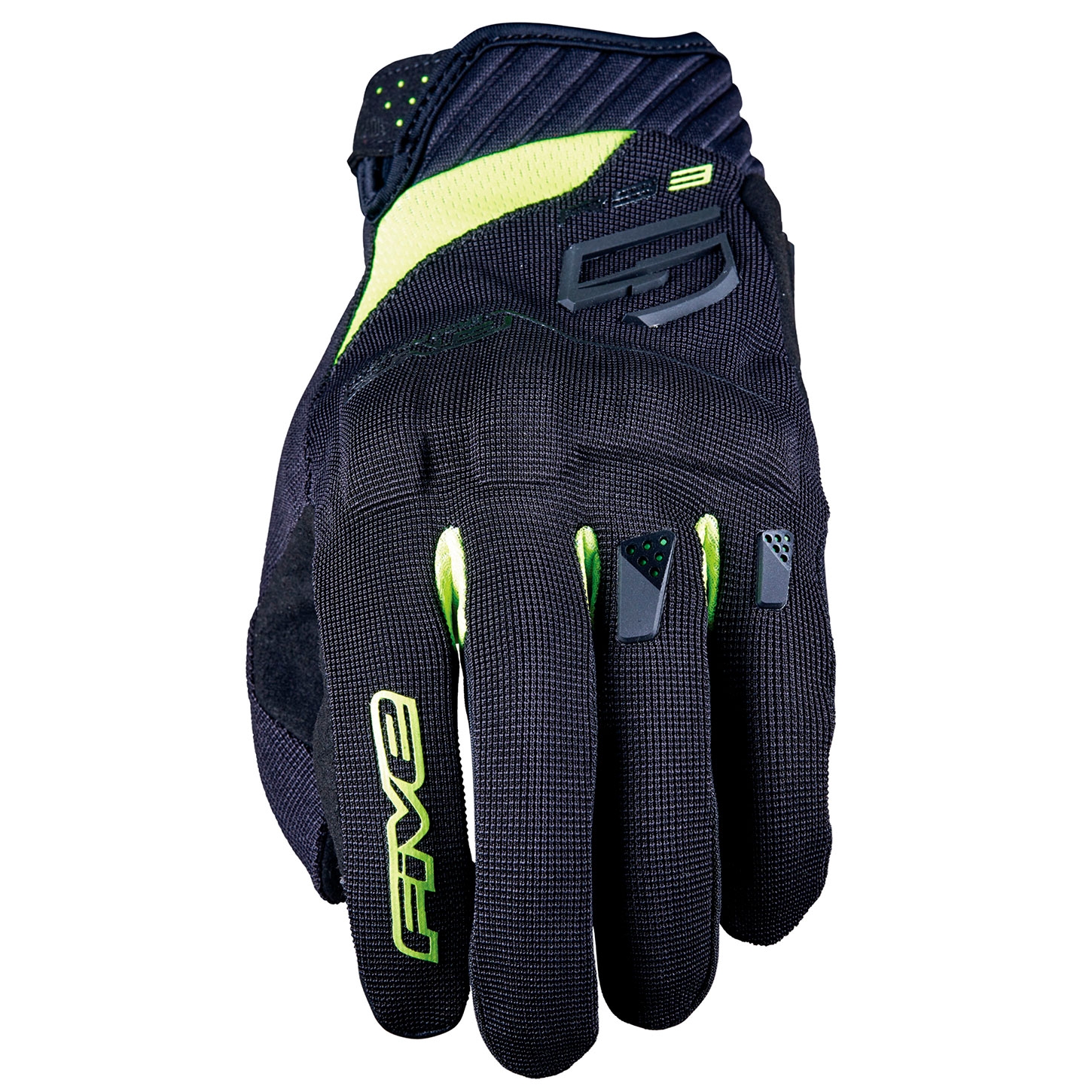 Guantes Five RS3 Evo Negro / Amarillo Fluor (colección 2022). RS3 Evo son los nuevos guantes cortos de verano de Five evolucionados a partir de los RS3, el modelo más vendidos del fabricante Francés. Estos guantes de precio asequible, presentan un nuevo diseño más polivalente y funcional que te permitirá circular cómodamente por la ciudad durante todo el día. Confeccionados en tejido Spandex de 4 vías, los guantes Five RS3 Evo incorporan las nuevas protecciones ErgoProtech, más ergonómicas y seguras que las protecciones anteriores.