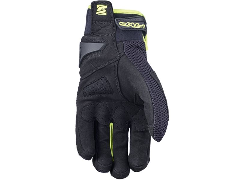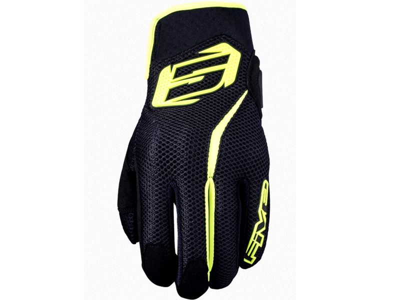 Guantes Five RS5 Air Negro / Amarillo. Los nuevos RS5 AIR (colección 2020) son los guantes de verano más ventilados que Five ha fabricado. Pensados para motoristas que circulan a diario por las calles de la ciudad y que buscan la máxima transpiración en los días más calurosos del verano. Confeccionados principalmente en tejido de Airmesh 3D de celda ancha para una mayor entrada del flujo de aire. Para ofrecer una flexibilidad máxima, los guantes Five RS5 AIR disponen de Lycra entre los dedos anular y medio además para garantizar el compromiso perfecto entre flexibilidad y ventilación. Incorpora protectores en la zona de los nudillos y sistema TouchScreen para pantallas táctiles.