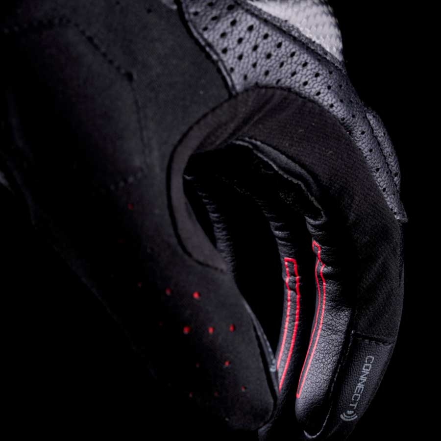 Los dedos índice y corazón, confeccionados en tejido Softshell perforado, ofrecen una excelente ventilación y comodidad al accionar los mandos. El sistema Touch Screen™ en índice y pulgar permite manejar dispositivos con pantalla táctil sin quitarse los guantes, una característica esencial para la conducción urbana actual.