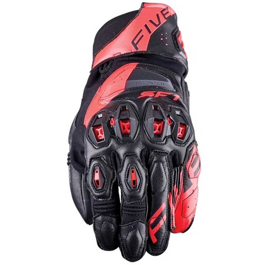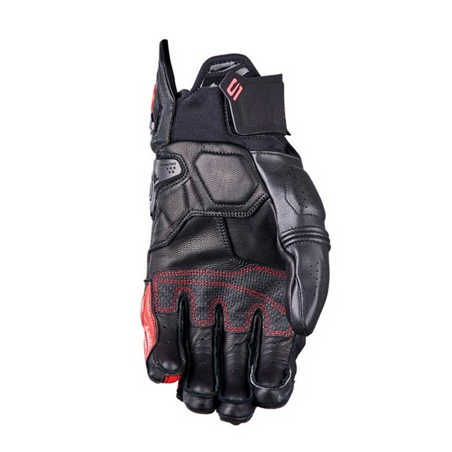 Guantes Five SF1 EVO Negro / Rojo. El guante de moto Five SF1 EVO es la versión corta del aclamado RFX1 EVO, diseñado para ofrecer las máximas prestaciones de un guante de competición en un formato más compacto y manejable. Pensado para pilotos exigentes, el SF1 EVO representa la evolución del legendario SF1, vencedor de 14 títulos del Campeonato Mundial de Supermoto, y se convierte en el nuevo referente de los guantes “short racing” de alto rendimiento.