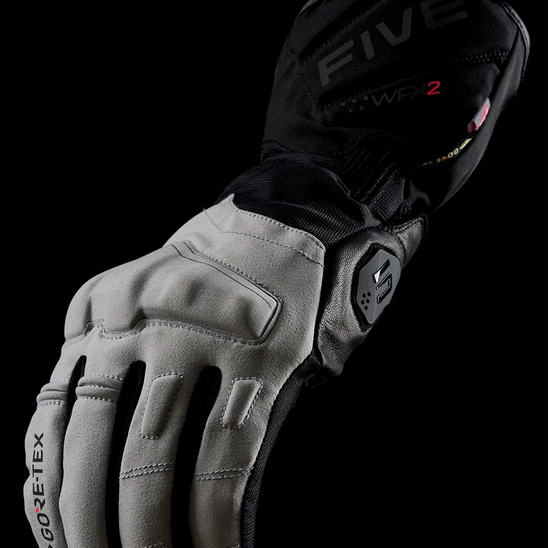 Guantes Five WFX2 EVO GTX Gore-Tex Negro / Gris. Los Guantes Five WFX2 EVO GTX Gore-Tex son la elección ideal para motoristas que buscan protección, confort y tecnología premium en los meses más fríos. Combinan la impermeabilidad y transpirabilidad del GORE-TEX® con el aislamiento térmico Primaloft®, ofreciendo un rendimiento excelente tanto en ciudad como en trayectos de media distancia.