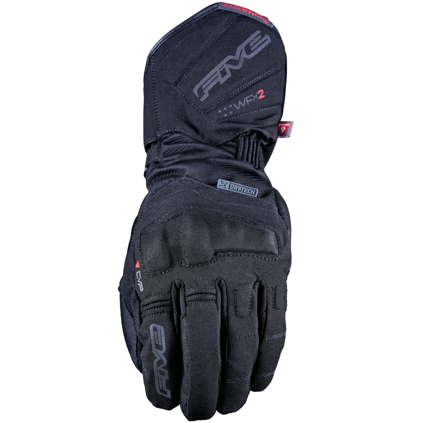 Guantes Five WFX2 Evo Wp Negro (coleccion 2022). El Five WFX2 EVO WP es un guante de invierno confortable y cálido con características de gama alta a un precio asequible. Fabricado en nailon con refuerzos de piel sintética y piel de cabra en la palma, incorporan una membrana interna impermeable y transpirable DRYTECH, además de aislamiento térmico Primaloft lo que hacen de estos guantes un aliado perfecto en climas fríos y húmedos. Dispone de deslizadera en la palma en TPR y protectores en PVC en los nudillos. El sistema Touch Screen permite el uso de pantallas táctiles sin quitarse los guantes.