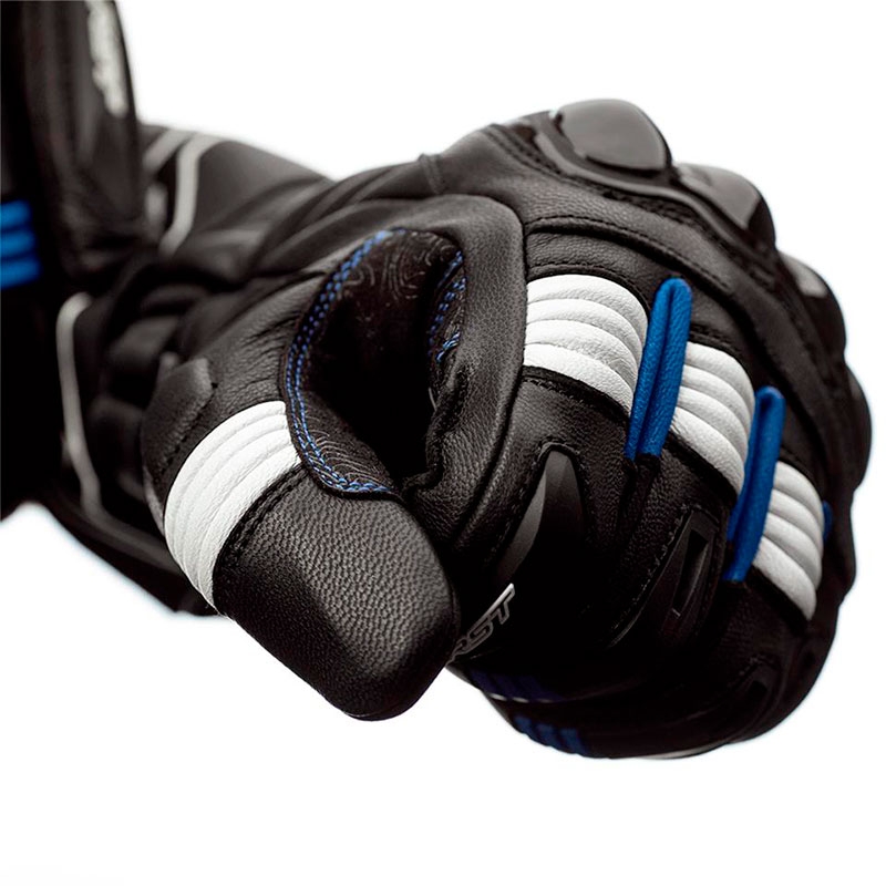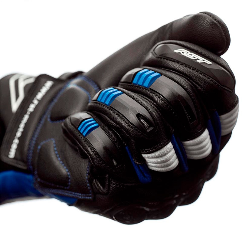 Guantes RST Pilot CE Azul. Los RST Pilot son ideales para motoristas con motos deportivas o naked que buscan unos guantes certificados de piel que ofrezcan buenas prestaciones de confort y seguridad con un precio reducido. Confeccionados con piel de alta calidad flexible y resistente a la abrasión. Cuentan con protecciones ergonómicas de TPU en la zona de nudillos y dedos precurvados para mejorar el confort durante la conducción. La palma de la mano está reforzada con Amara y doble capa de piel y PowerGrip de silicona para un excelente agarre a los puños. Disponen de cierre con 2 velcro para evitar el descalzado en caso de caída.