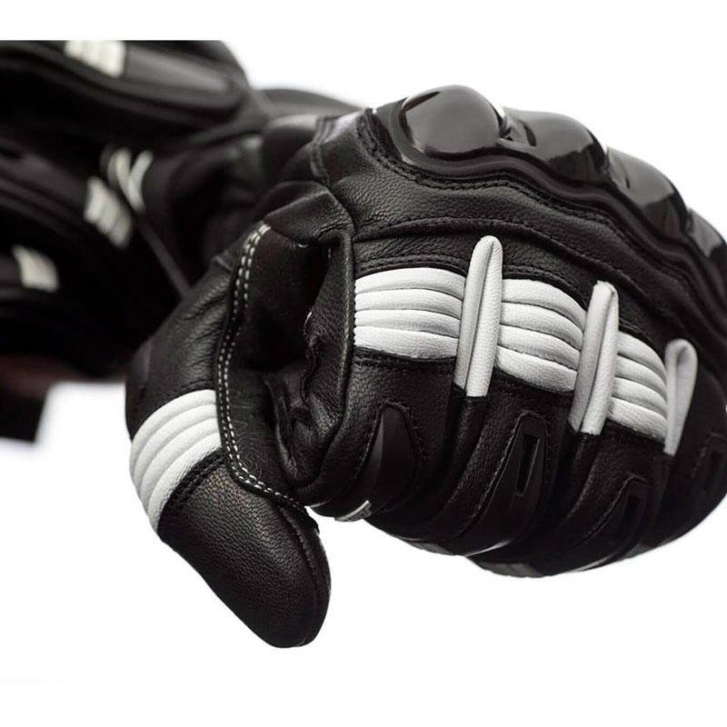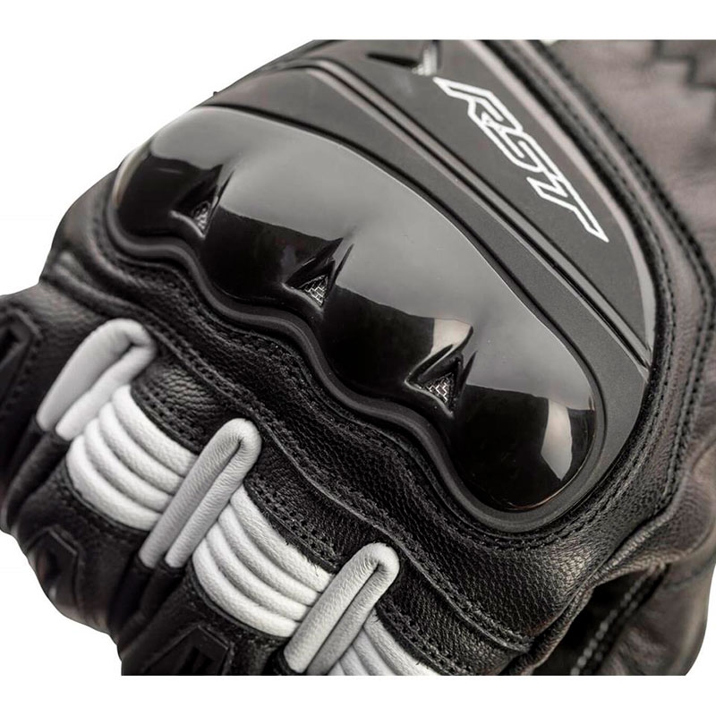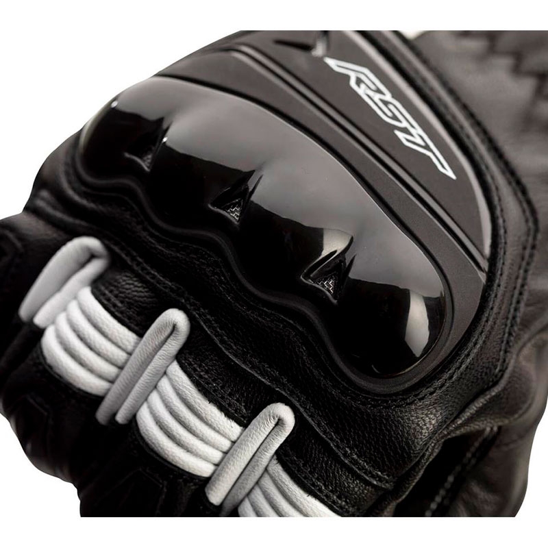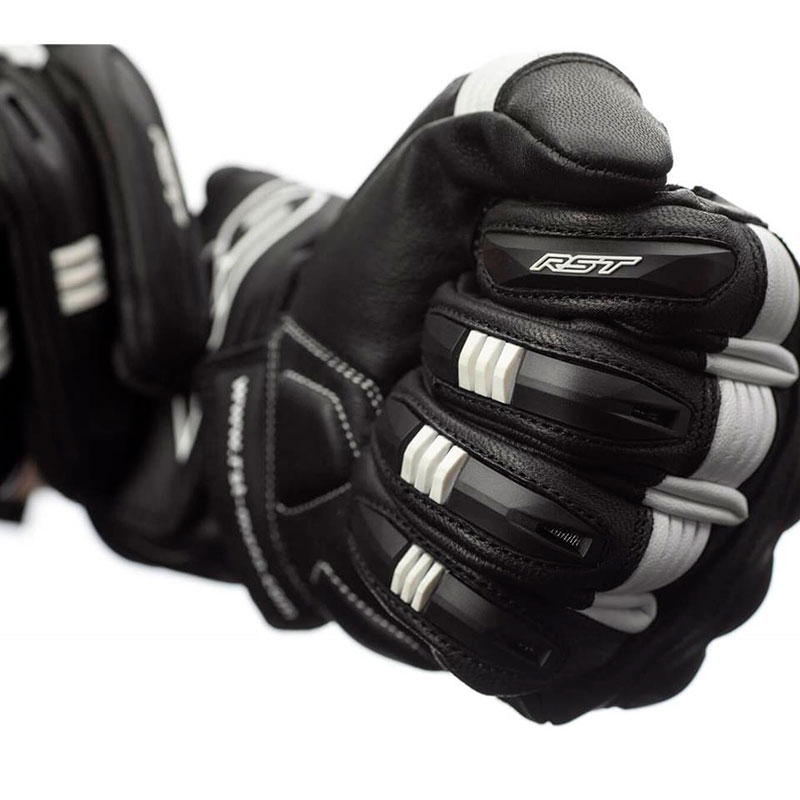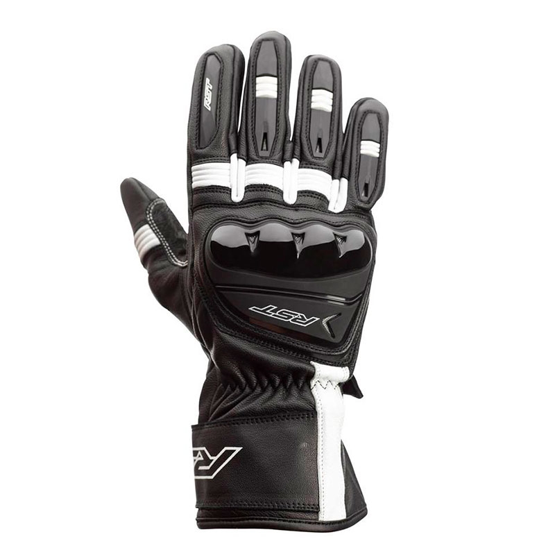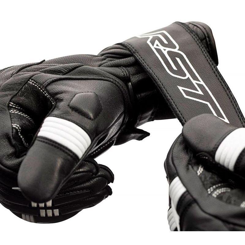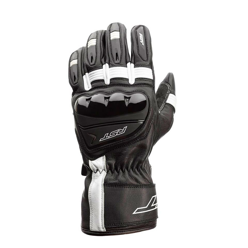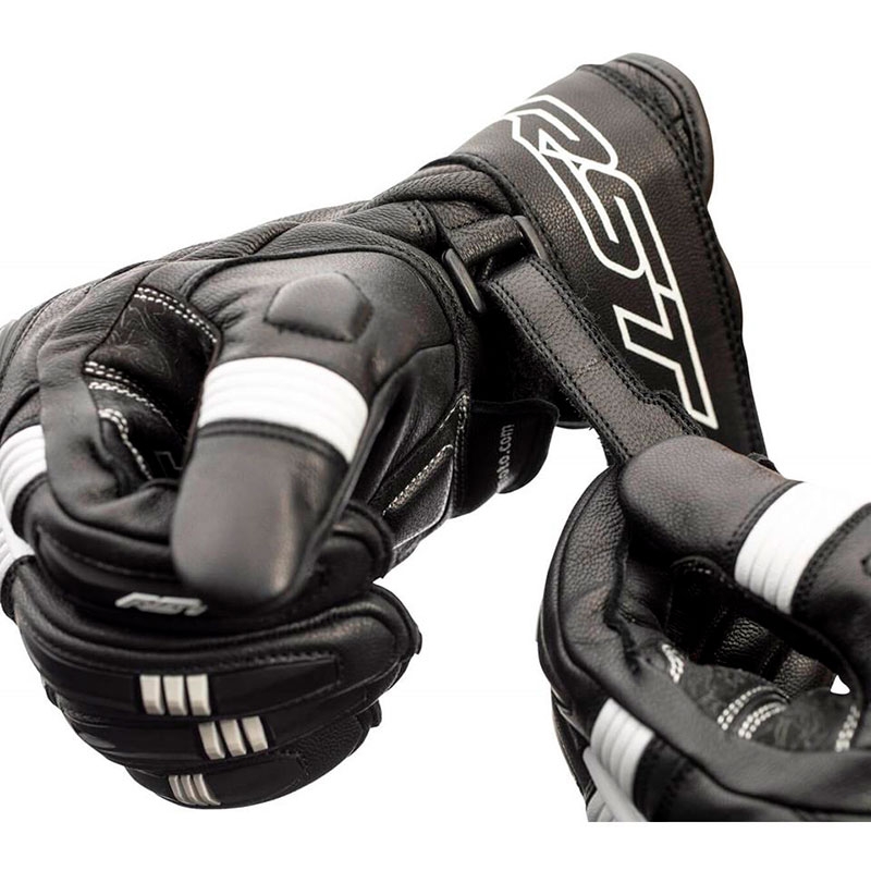 Guantes RST Pilot CE Negro / Blanco. Los RST Pilot son ideales para motoristas con motos deportivas o naked que buscan unos guantes certificados de piel que ofrezcan buenas prestaciones de confort y seguridad con un precio reducido. Confeccionados con piel de alta calidad flexible y resistente a la abrasión. Cuentan con protecciones ergonómicas de TPU en la zona de nudillos y dedos precurvados para mejorar el confort durante la conducción. La palma de la mano está reforzada con Amara y doble capa de piel y PowerGrip de silicona para un excelente agarre a los puños. Disponen de cierre con 2 velcro para evitar el descalzado en caso de caída.