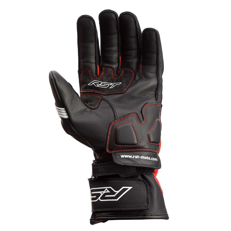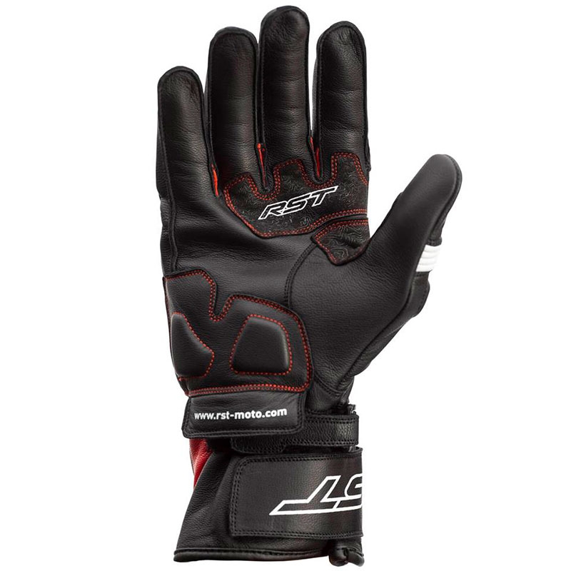 Guantes RST Pilot CE Negro / Rojo / Blanco. Los RST Pilot son ideales para motoristas con motos deportivas o naked que buscan unos guantes certificados de piel que ofrezcan buenas prestaciones de confort y seguridad con un precio reducido. Confeccionados con piel de alta calidad flexible y resistente a la abrasión. Cuentan con protecciones ergonómicas de TPU en la zona de nudillos y dedos precurvados para mejorar el confort durante la conducción. La palma de la mano está reforzada con Amara y doble capa de piel y PowerGrip de silicona para un excelente agarre a los puños. Disponen de cierre con 2 velcro para evitar el descalzado en caso de caída.