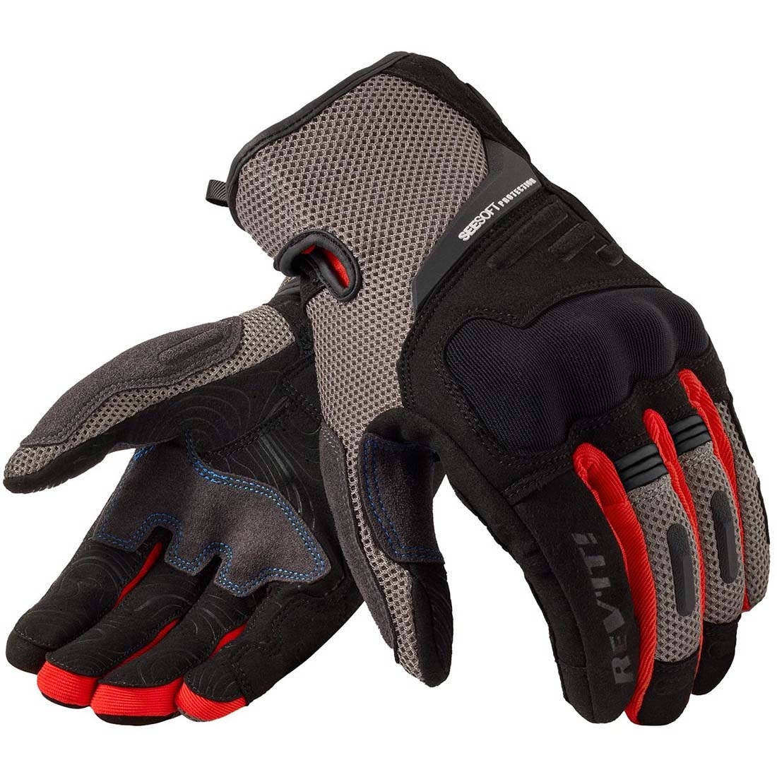 Guantes Revit Cavern Gris / Rojo. Los Revit Cavern son guantes adventure de puño corto diseñados para ofrecer la máxima comodidad y ventilación en verano. Con un estilo técnico y deportivo, están confeccionados en tejido de microfibra resistente y malla 3D perforada que permiten una excelente transpirabilidad incluso en las jornadas más cálidas. Su diseño ergonómico, combinado con materiales ligeros y elásticos, los convierte en una opción perfecta tanto para motoristas mujer como hombre que buscan frescura, agarre y protección.