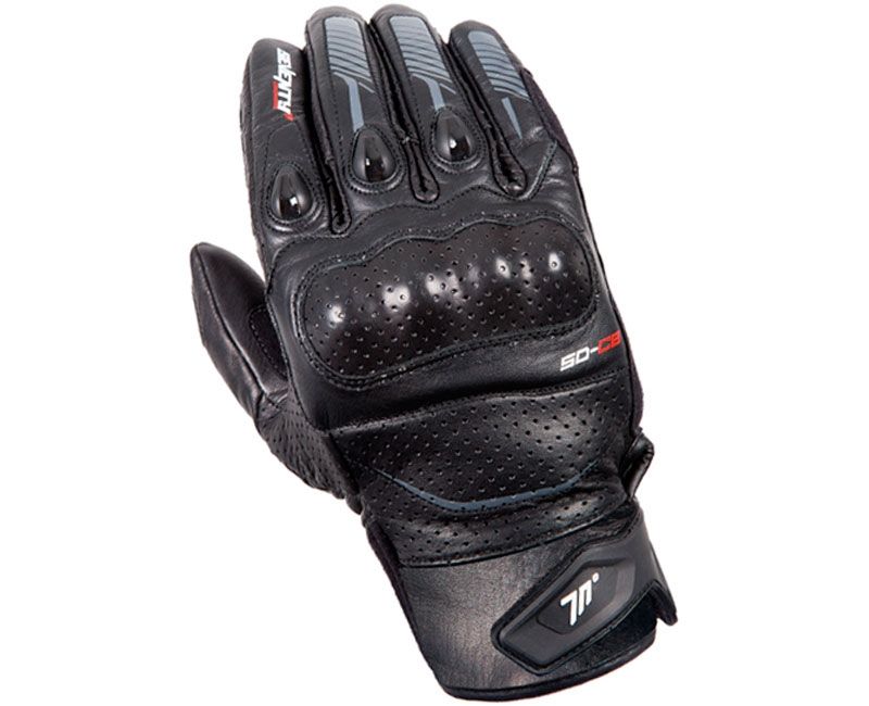 Guantes Seventy Degrees SD-C8 Negro. Guantes cortos de alta calidad ideales tanto para conducción de turismo como de conducción de ciudad. Confeccionados en piel bovina full analine y Amara, incorporan paneles perforadas para ofrecer mayor ventilación en días de mucho calor. Los guantes Seventy Degrees SD-C8 además de ser muy suaves al tacto y ligeros, también son muy seguros, gracias a las protecciones de nudillos y a los protectores situados en la palma de la mano. Las costuras externas ofrecen mayor confort al motorista y además permite un ajuste más ceñido para mayor control sobre los mandos.