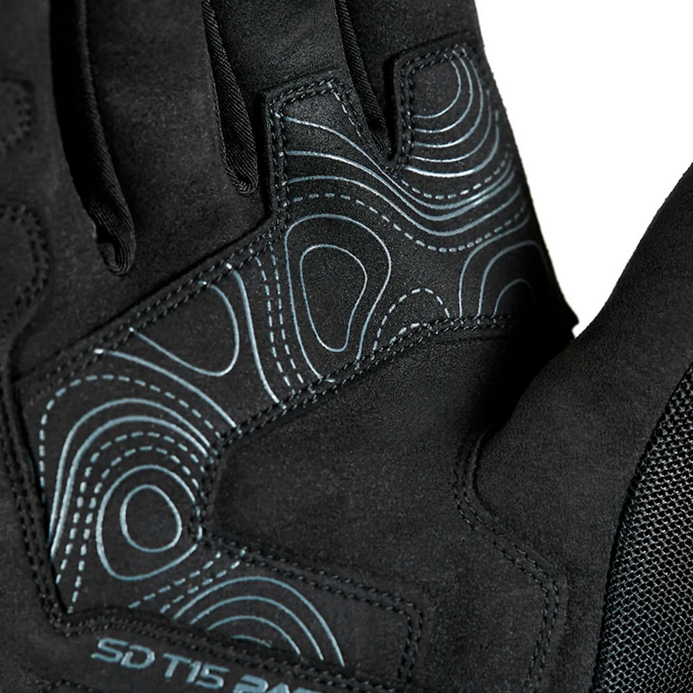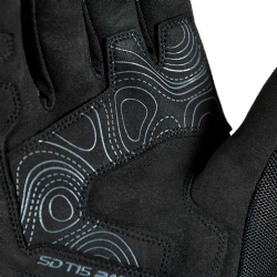 Equipados con una membrana impermeable y cortavientos adherida a la palma, los guantes SD-T15 permiten mantener el control de la moto en condiciones de lluvia o viento sin comprometer el tacto sobre los mandos. Además, su sistema de costura precurvado y la ergonomía de su diseño permiten una adaptación natural a la mano desde el primer uso.