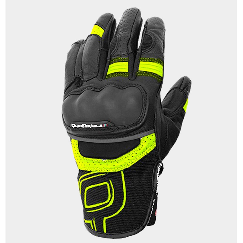 Guantes Verano Quarter Mile Pacific II Negro / Amarillo Fluor. Guantes de verano Quarter Mile Pacific II – Protección, confort y estilo para tus rutas. Los guantes de verano Quarter Mile Pacific II están diseñados para motoristas que buscan comodidad, ventilación y seguridad en los meses más calurosos del año. Fabricados en piel de alta calidad, son guantes de moto cortos que se adaptan perfectamente a un uso urbano, touring, sport o trail. En Ramirez Moto somos distribuidores oficiales de Quarter Mile, y te ofrecemos los guantes de verano Quarter Mile Pacific II al mejor precio en todas las tallas y colores disponibles.