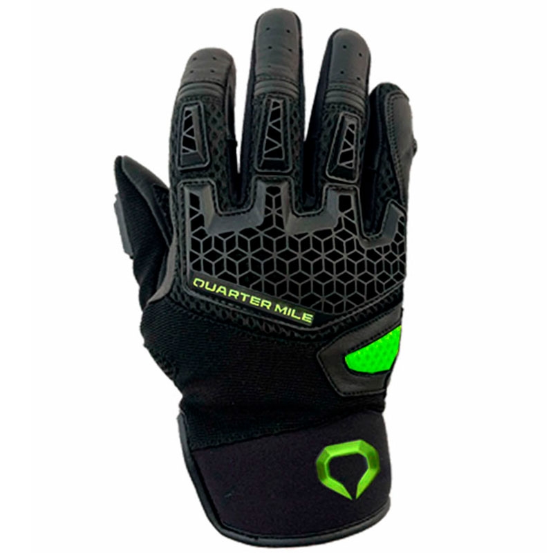 Guantes Verano Quarter Mile Rodeo Negro / Amarillo Fluor. Guantes de verano Quarter Mile Rodeo en Ramirez Moto. Guantes Quarter Mile Rodeo – Ligereza, frescura y protección para los días más calurosos. Los Quarter Mile Rodeo son guantes cortos de verano diseñados para ofrecer una ventilación máxima y libertad de movimientos, sin comprometer la protección ni el tacto durante la conducción. Ideales para ciudad, scooter, trail, naked o rutas en climas cálidos, están pensados para motoristas que valoran la frescura y la funcionalidad.