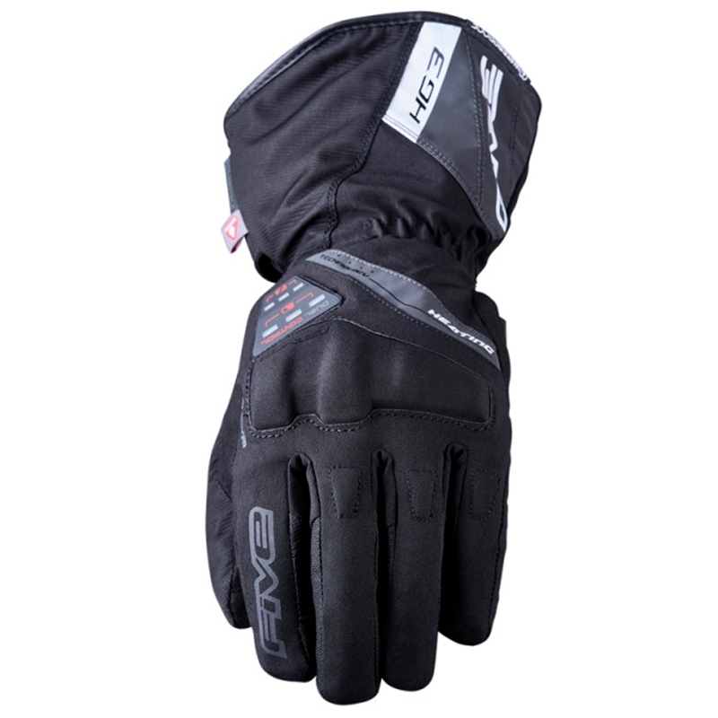 Guantes calefactables FiveHG3 EVO Woman WP Negro. El guante de motocicleta calefactables Five HG3 EVO WP (colección guantes de moto Five 2024), es un modelo básico dentro de la línea de guantes calefactables de Five. A pesar de esto, se beneficia de la misma tecnología de calentamiento y principios que los modelos más sofisticados (aislamiento Primaloft®, membrana impermeable y transpirable 5_DRYTECH™, sistema de control Dual, conectividad...), pero con una estructura exterior más simplificada y completamente sintética para mantener un coste asequible.