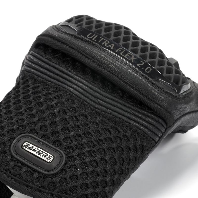 Guantes Rainers Ultraflex Negro. Guantes Rainers Ultraflex en negro – Máxima ventilación y flexibilidad para tus trayectos touring de verano. Los guantes Rainers Ultraflex combinan un diseño corto, cómodo y ventilado, con la seguridad y resistencia que todo motorista necesita en verano. Fabricados con un 80% de piel y un 20% de malla 3D de poliéster, ofrecen una ventilación excepcional, ideal para días calurosos, sin sacrificar protección ni durabilidad.
