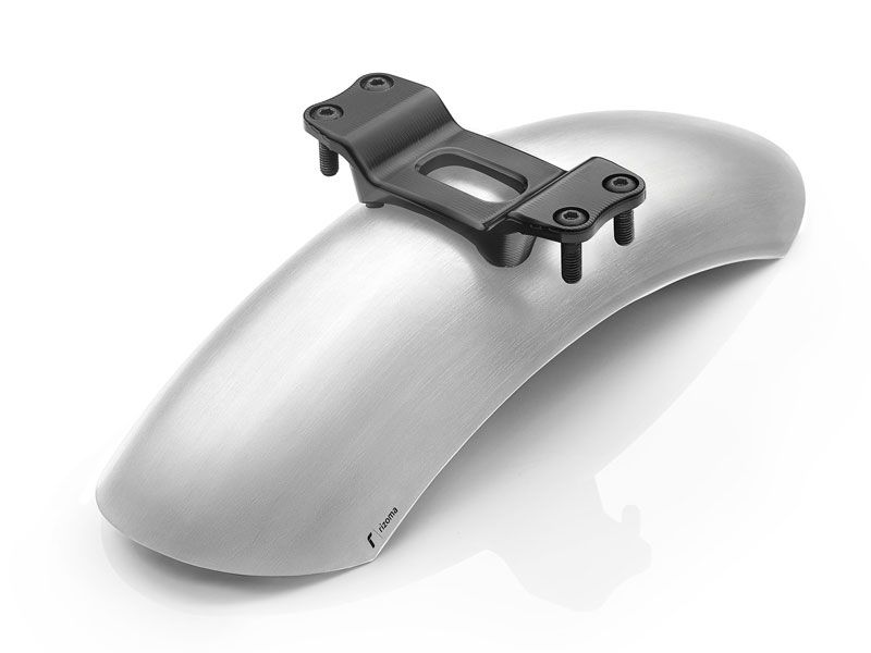 Guardabarros delantero Rizoma ZBW082A BMW R nine T 1200 Racer 2017 Plata. El guardabarro Rizoma ZBW082A completa la línea delantera, otorgandole una estética pura "Café Racer" a la R nine T Racer. Está realizado en lámina de aluminio de alta calidad y goza de un acabado de cepillo con anodizado natural. Cuenta con estabilizador para la horquilla.