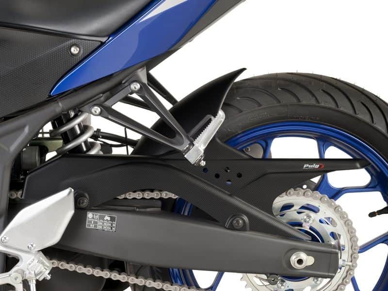 Guardabarros trasero Puig 8558C Yamaha MT-03 2016/17 / YZF-R3 2016/17 símil carbono. El guardabarro Puig 8558, además de mantener limpio el paso de rueda o la parte inferior del asiento, mejora notablemente la estética de la moto. Realizado en abs (material totalmente pintable), resistente y de muy buena calidad. El guardabarros Puig 8558 se entrega con el herraje (tratamiento anticorrosión) y unas instrucciones para su montaje.