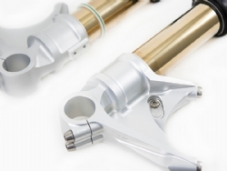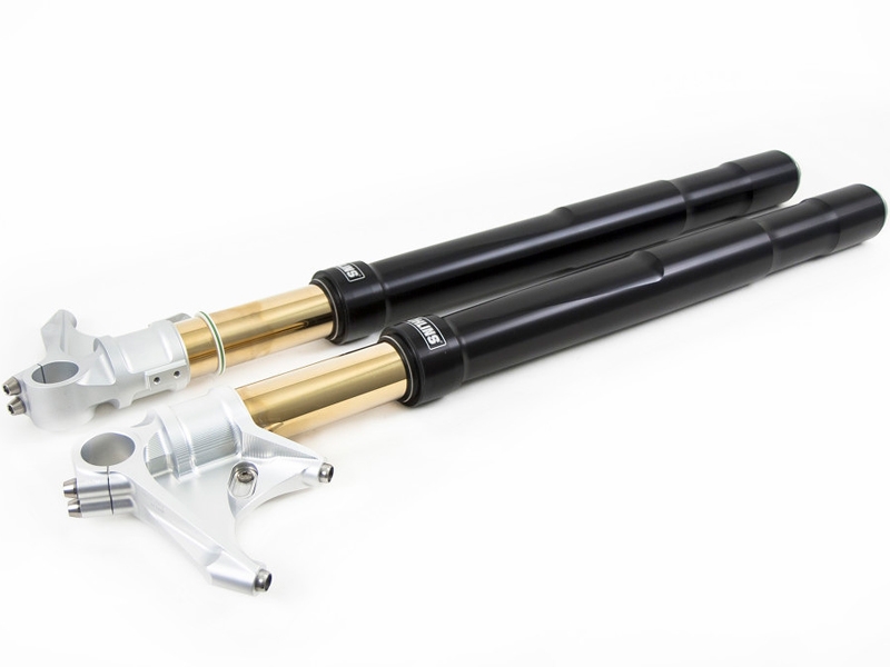 Horquilla Ohlins FGRT 213 Ducati 1098 (horquilla showa) Blackline. La horquilla delantera Ohlins FGRT FGRT 213 incorpora tecnología que deriva de la experiencia adquirida en competición con los kits de cartuchos de horquilla delantera de 30 mm. La FGRT 200 dispone de un sistema hidráulico de compresión y extensión totalmente separados, con la compresión en una barra y la otra de extensión. Este sistema garantiza un comportamiento más dinámico, además de que permite un mejor acceso a la regulación hidráulica en la parte superior de cada barra. La nueva horquilla delantera mejora las sensaciones del piloto, la frenada y el control de la moto en general. La horquilla Ohlins GRT 200 posee un diseño perfecto en términos de rendimiento y apariencia.