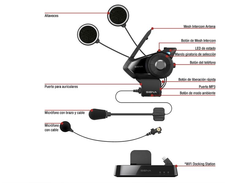 Especificaciones técnicas del intercomunicador moto Sena 30K Dual Pack: