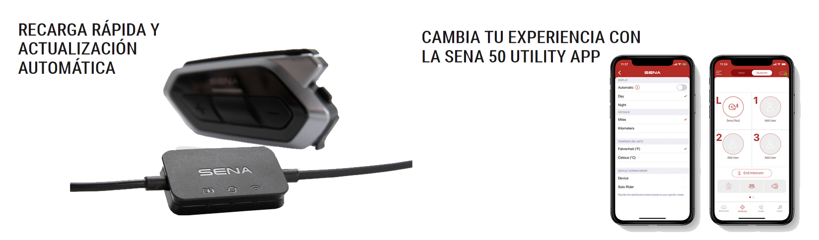 Todas las funciones del intercomunicador Sena 50R estarán en tus manos con la nueva Utility App. Después de descargar la aplicación 50 Utility, conecta tu dispositivo a tu smartphone y descubre lo sencillo que es configurarlo de la forma que quieras. Puedes gestionar las conexiones de Intercomunicación Bluetooth, configurar canales de Intercomunicación en Open Mesh o crear un grupo privado en Group Mesh, y para una experiencia musical sin precedentes prueba el EQ audio!.
