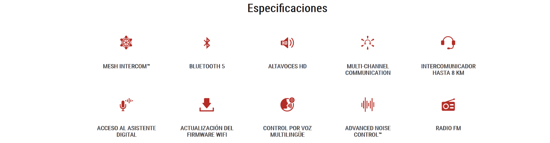 - Intercomunicador Bluetooth: hasta 2 km en zona abierta.