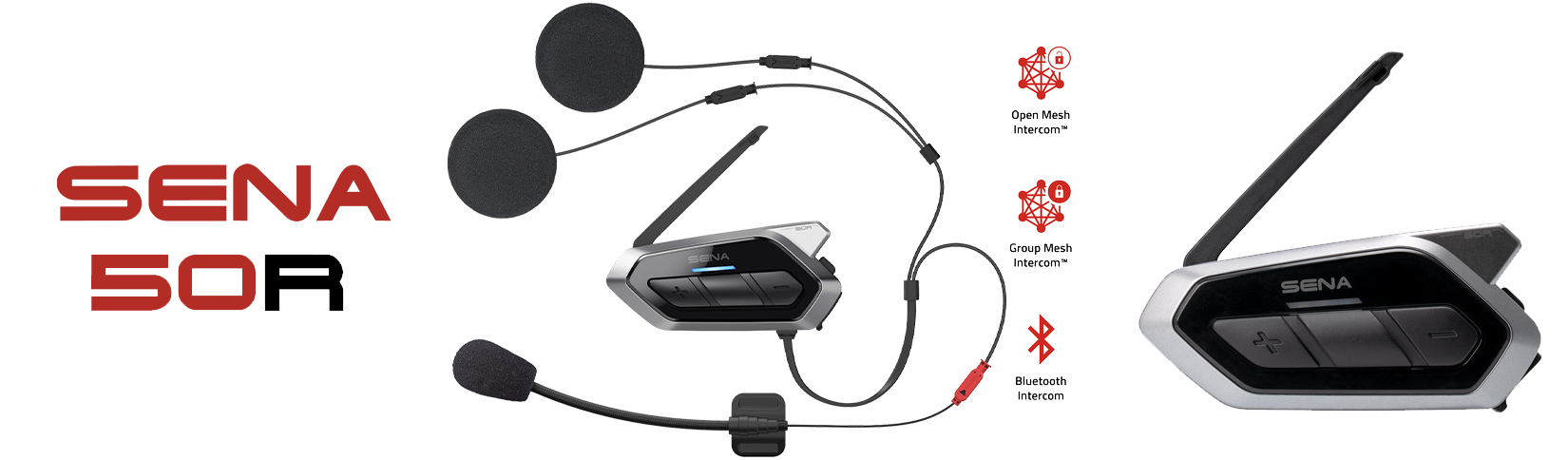 Intercomunicador Sena 50R Pack Dual 50R-02D. El nuevo intercomunicador de moto Sena 50R está dotado con los últimos avances tecnologícos del la marca para ofrecer un rendimiento sin precedentes. Su diseño armoniza a la perfección la máxima elegancia combinado con un tamaño reducido pero robusto. El intercomunicador Sena 50R ha sido testado por más 100 de motoristas distintos en el Bmw GS Trophy 2020, un evento celebrado en Nueva Zelanda y en el cual fue sometido a las más estrictas exigencias.