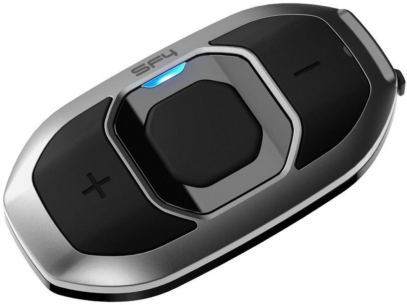 Intercomunicador Sena SF4. Se trata de la versión más potente de la serie SF, diseñada para grupos pequeños de motoristas y también para piloto y pasajero. El Sena SF4 ofrece a motoristas que viajan en grupos pequeños, un intercomunicador de 4 vías con alcance de 1,2 kilómetros (0,8 millas). El SF4 permite también conectar un smartphone.
