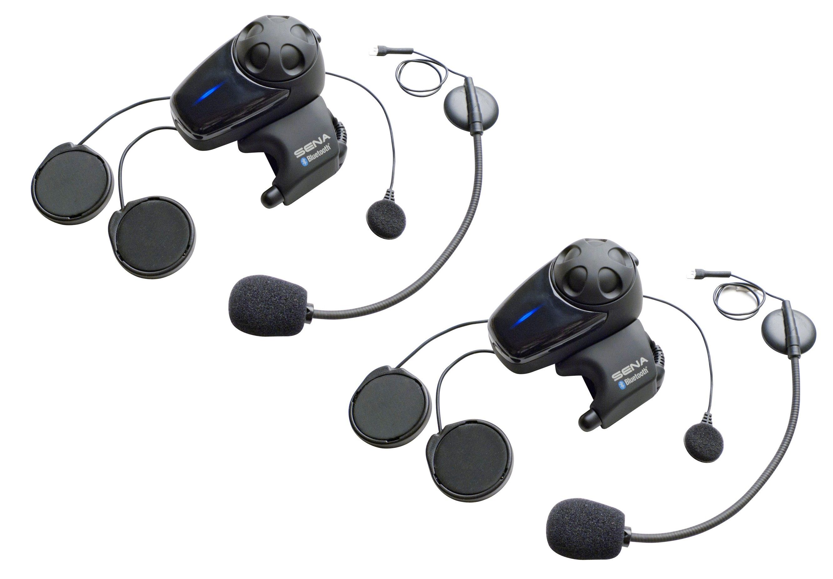 Intercomunicador Sena SMH10 Dual SMH10-11D (pareja de unidades). El intercomunicador Sena SMH10 ofrece un alcance de hasta 900 metros, permite conectarse con un compañero de viaje, hablar y compartir música y también realizar llamadas con manos libres. Se caracteriza por su fácil funcionamiento y por sus amplios botones para manipular cómodamente incluso con guantes. La referencia SMH10-11D corresponde a la versión con kit de micrófono universal.