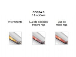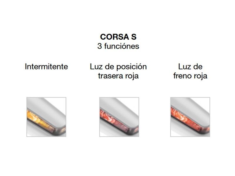 - 3 funciones: 1.) intermitente, 2.) luz de posición trasera roja, 3.) luz de freno roja.