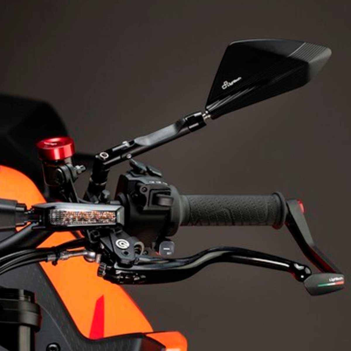 Juego de espejos Lightech SPEAL014NER Aluminio Negro. Juego de espejos Lightech SPEAL014ROS Aluminio Rojo. Juego de espejos Lightech SPEAL014 – Aluminio Negro o Rojo. Los espejos retrovisores Lightech SPEAL014 destacan por su diseño deportivo, elegante y minimalista. Están fabricados en aluminio mecanizado CNC a partir de bloque sólido, lo que garantiza una gran resistencia sin renunciar a la ligereza que demandan los motoristas más exigentes. Su acabado anodizado está disponible en negro (SPEAL014NER) o en rojo (SPEAL014ROS), aportando un toque exclusivo y personal a tu moto.