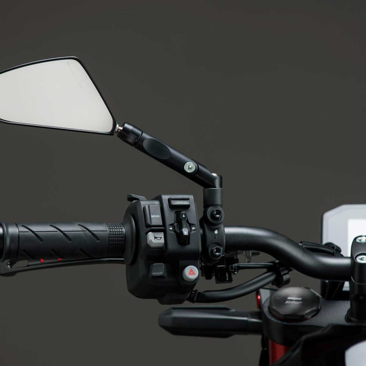 Gracias a sus dimensiones de 135 x 65 mm, ofrecen una buena visibilidad manteniendo un estilo compacto y deportivo. Incorporan rosca de 2xM10x1,25 en el lado derecho y 1xM10x1,25 en el lado izquierdo, lo que asegura una instalación sencilla en una gran variedad de motocicletas, desde Naked hasta Maxi Enduro o Maxi Scooter.