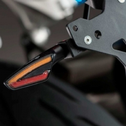 Gracias a su diseño único y patentado, los FRE935NER ofrecen una estética diferenciadora respecto a otros intermitentes del mercado, además de integrarse a la perfección con los portamatrículas regulables Lightech, logrando una línea trasera deportiva y compacta.