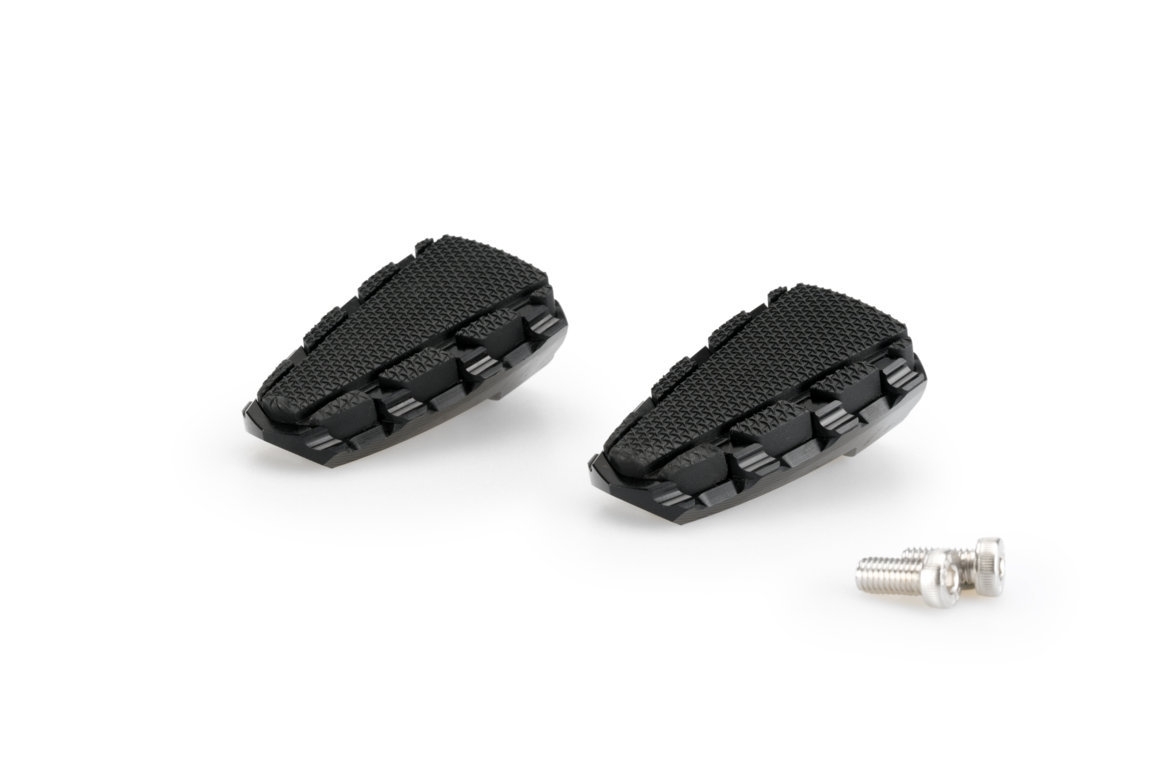 Juego estriberas Trail 2.0 Puig 20853N. Las nuevas estriberas de moto Puig Trail 2.0 ha sido mecanizadas a partir de un bloque de aluminio y anodizadas en hasta 7 colores distintos. Diseñadas para ofrecer funcionalidad y elegancia, destacan sus bombeadas así como las inclinación de los nervios de aluminio que copan la base de goma. Para garantizar un mejor funcionamiento, Puig ha reducido la distancia del eje de rotación al inicio de la base de goma para evitar que la estribera quede descentrada respecto las palancas de freno y cambio. Se pueden usar con la base de goma o sin ella si buscamos un mejor agarre de las botas en conducción off-road. Estribera compatible con todos los herrajes Puig de piloto (no incluidos).