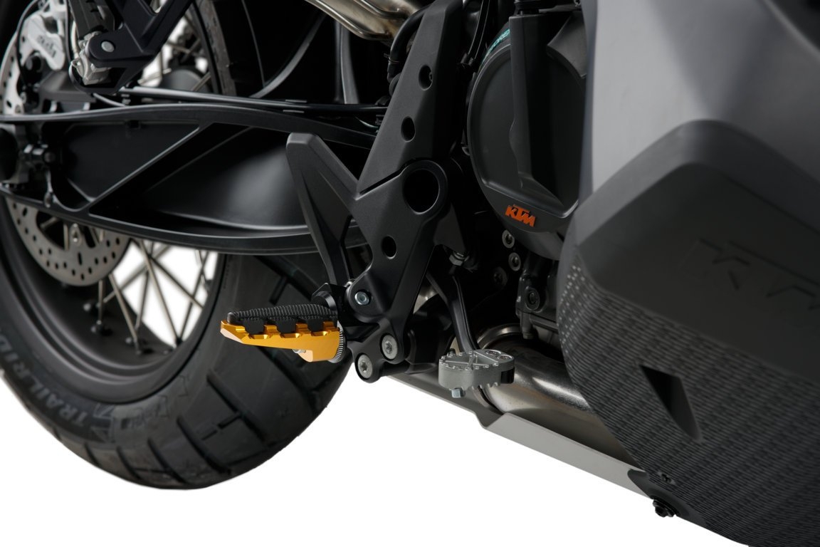 Juego estriberas Trail 2.0 Puig 20853O. Las nuevas estriberas de moto Puig Trail 2.0 ha sido mecanizadas a partir de un bloque de aluminio y anodizadas en hasta 7 colores distintos. Diseñadas para ofrecer funcionalidad y elegancia, destacan sus bombeadas así como las inclinación de los nervios de aluminio que copan la base de goma. Para garantizar un mejor funcionamiento, Puig ha reducido la distancia del eje de rotación al inicio de la base de goma para evitar que la estribera quede descentrada respecto las palancas de freno y cambio. Se pueden usar con la base de goma o sin ella si buscamos un mejor agarre de las botas en conducción off-road. Estribera compatible con todos los herrajes Puig de piloto (no incluidos).