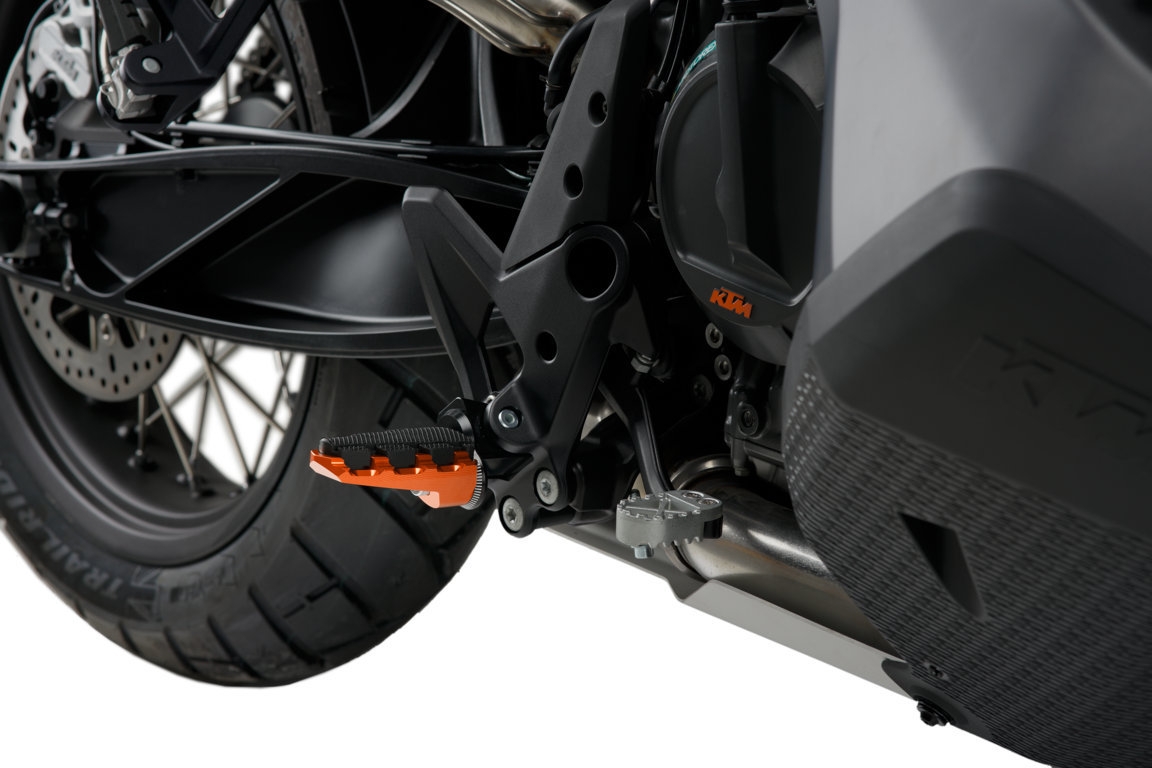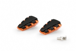Juego estriberas Trail 2.0 Puig 20853T. Las nuevas estriberas de moto Puig Trail 2.0 ha sido mecanizadas a partir de un bloque de aluminio y anodizadas en hasta 7 colores distintos. Diseñadas para ofrecer funcionalidad y elegancia, destacan sus bombeadas así como las inclinación de los nervios de aluminio que copan la base de goma. Para garantizar un mejor funcionamiento, Puig ha reducido la distancia del eje de rotación al inicio de la base de goma para evitar que la estribera quede descentrada respecto las palancas de freno y cambio. Se pueden usar con la base de goma o sin ella si buscamos un mejor agarre de las botas en conducción off-road. Estribera compatible con todos los herrajes Puig de piloto (no incluidos).
