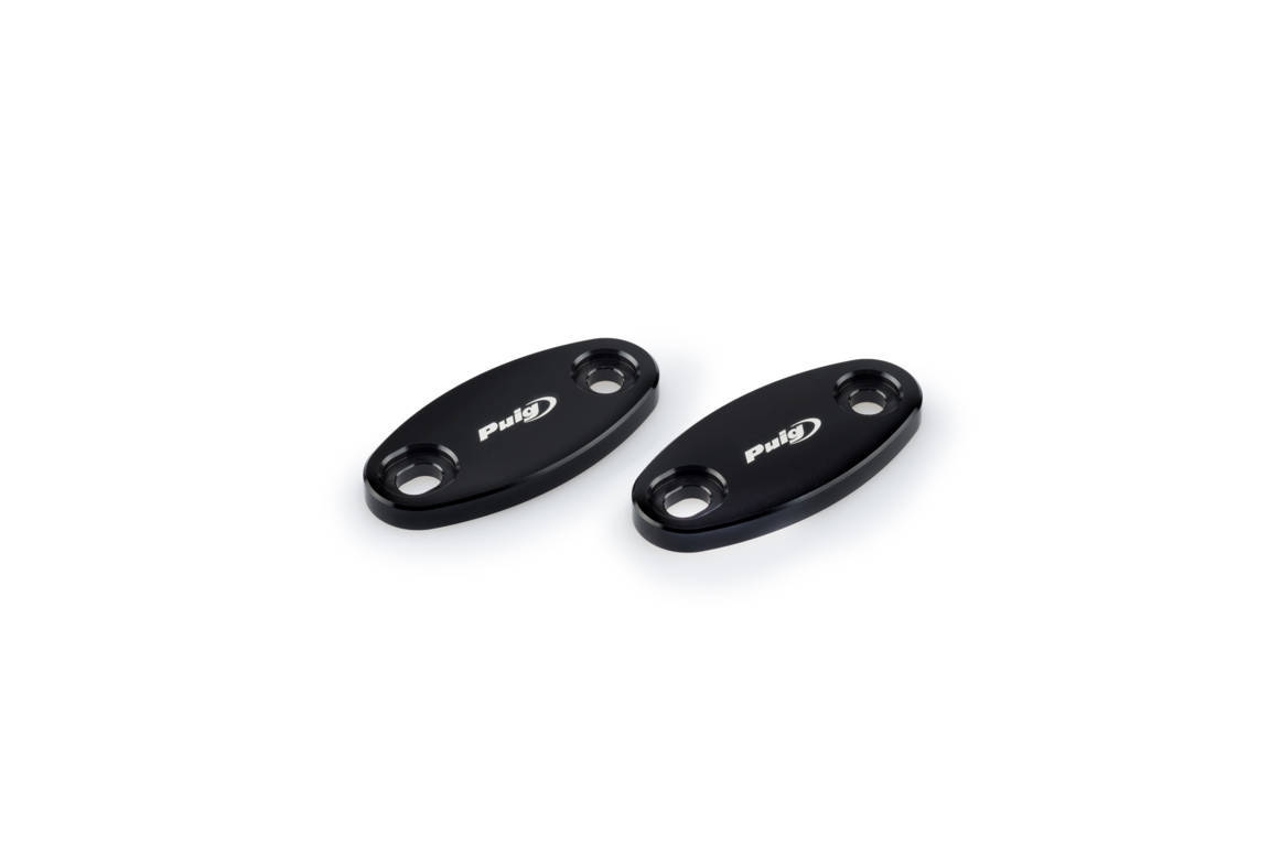 Juego tapitas retrovisor Puig 3854N Modelos Honda Negro. Las tapas para el retrovisor Puig ofrecen una imagen más limpia además de unos acabados impecables en caso de retirar los espejos para entrar a circuito. Las tapas para el retrovisor Puig están fabricadas a partir de un bloque de aluminio con el posterior anodizado en color negro, un tono que combina con cualquier modelo deportivo. Su diseño está especialmente ideado para no destacar sobre el carenado, manteniendo su forma y funcionalidad estructural. Precio de la pareja. En algunos casos las imágenes mostradas pueden ser orientativas.