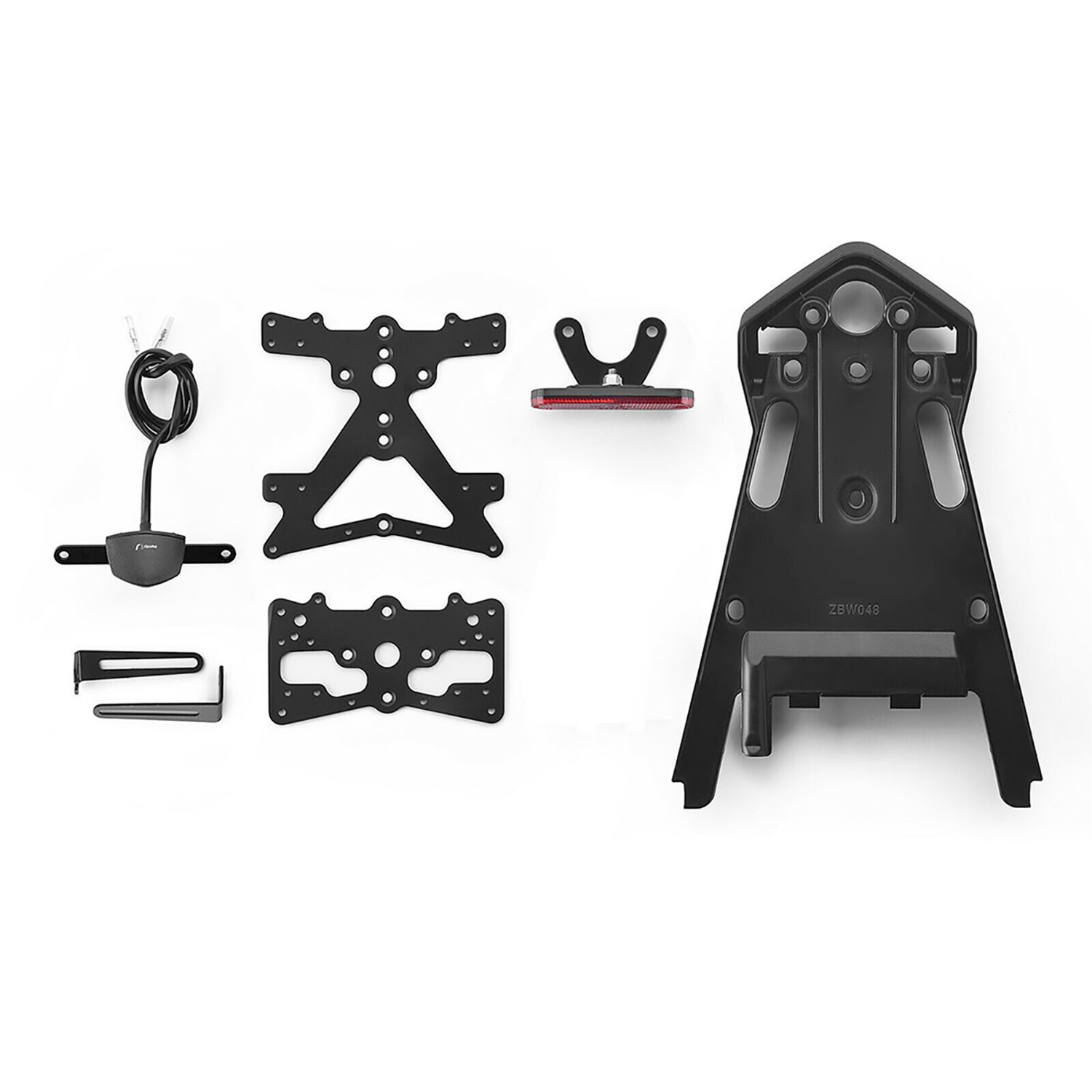 Con una instalación intuitiva y específica para cada modelo de moto, este kit incluye soportes para los intermitentes Rizoma, un cover tapa paso rueda modelo ZBW048B, un catadióptrico, una placa de soporte para matrícula de estilo estadounidense y una luz de matrícula LED SMD, la cual cumple con todas las homologaciones necesarias. El acabado en anodizado negro no solo añade un toque de elegancia, sino que también protege el conjunto contra los elementos, asegurando que mantenga su apariencia prístina a lo largo del tiempo.