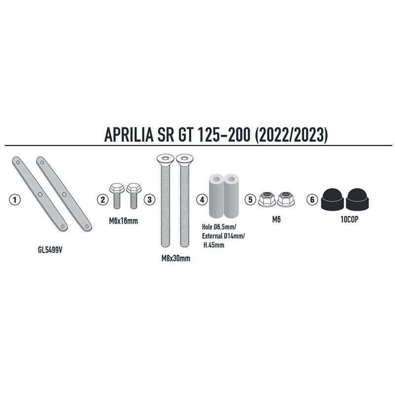 Kit anclajes cúpula Givi D6711KIT Aprilia SR 125-200 GT 2022-2023