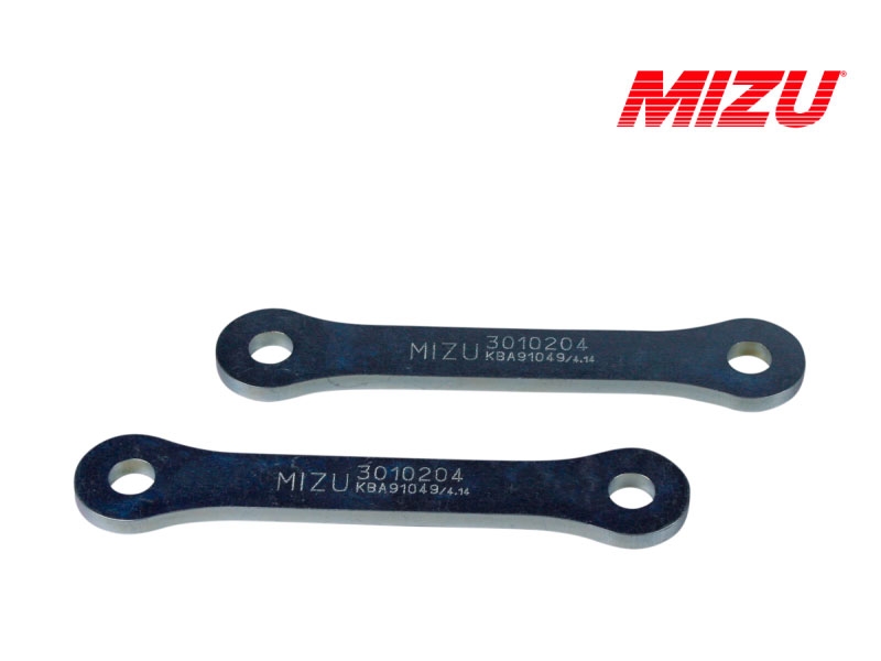 Kit aumento de altura Mizu 3010204. Kit de suspensión Mizu 3010204 que permite subir la suspensión. Realizado con materiales de alta calidad, el kit Mizu cuenta con garantía de 3 años. Con los kits de suspensión para moto Mizu podrás bajar o subir la altura de tu moto sin que por ello tengas que modificar la geometría. Diseñados y fabricados en Alemania bajo las directrices de la ISO 9001 y con certificado de homologación europea TÜV. Para garantizar la compatibilidad del kit Mizu es necesario comprobar el Tipo especificado en la ficha técnica.